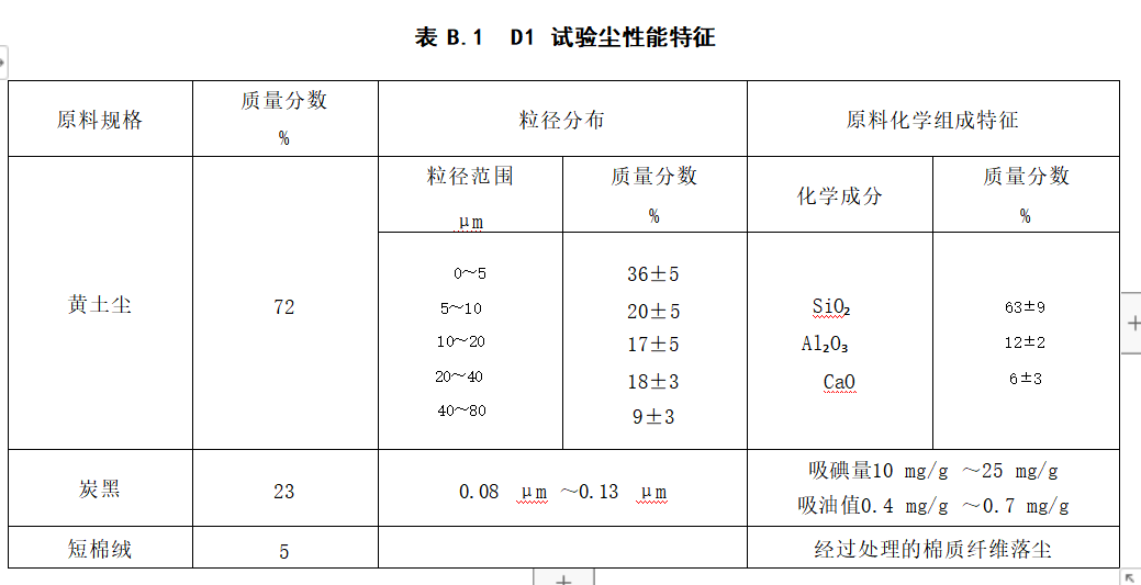 至少分4次加尘。调节并控制试验空气中的粉尘浓度在(70±7)mg/m³ 范围内。